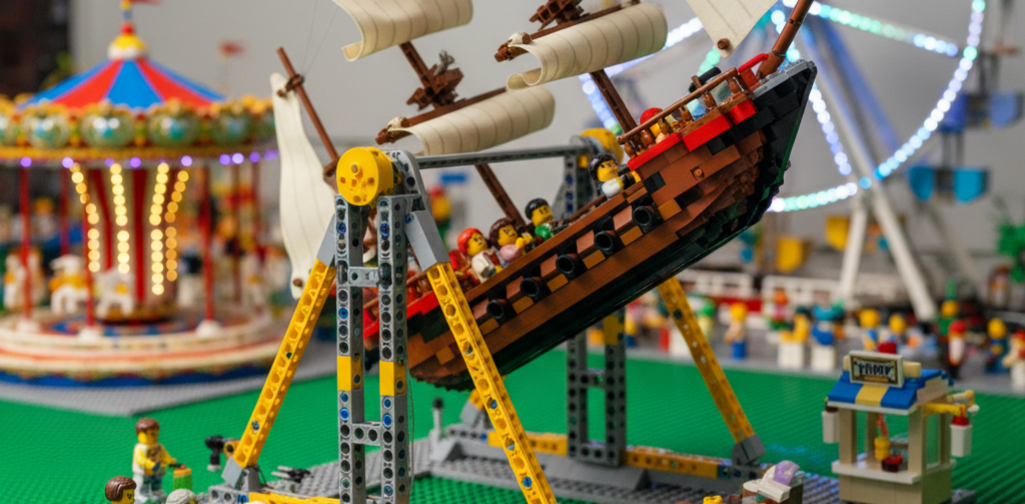 Ein Schiffschaukel: Eine große Schiffsschaukel, die hoch in die Luft schwingt.